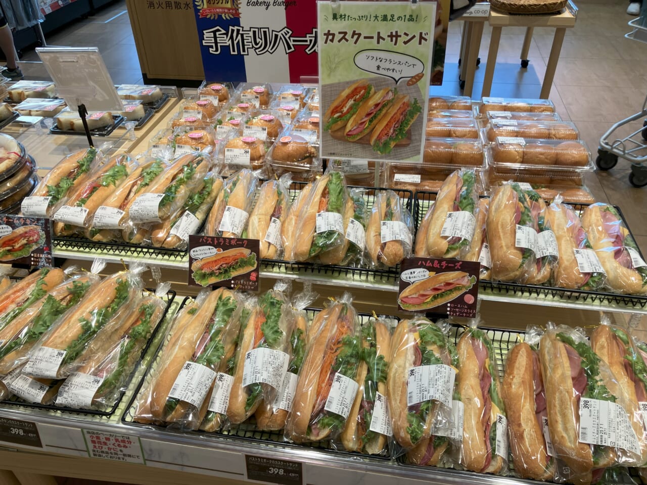 また、サンド系商品では「カスクートサンド」を展開。スチームチキン、パストラミポーク、ハムとチーズの3種類を揃えた。同商品は、256月にオープンした「かすかべ東店」(埼玉県春日部市)で初めて導入、好評だったことから川口西店でも販売している。