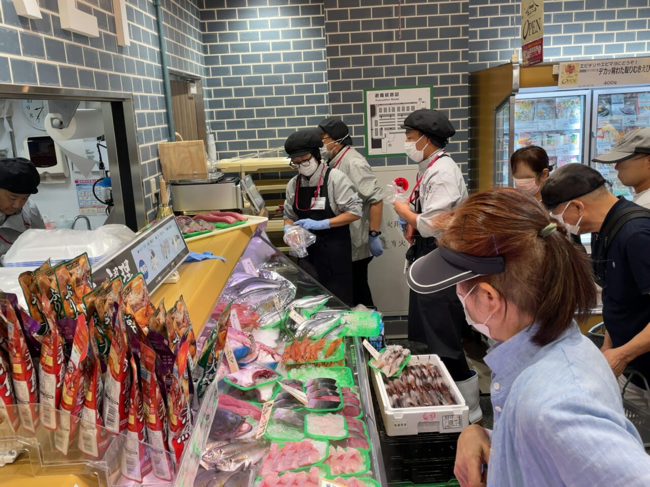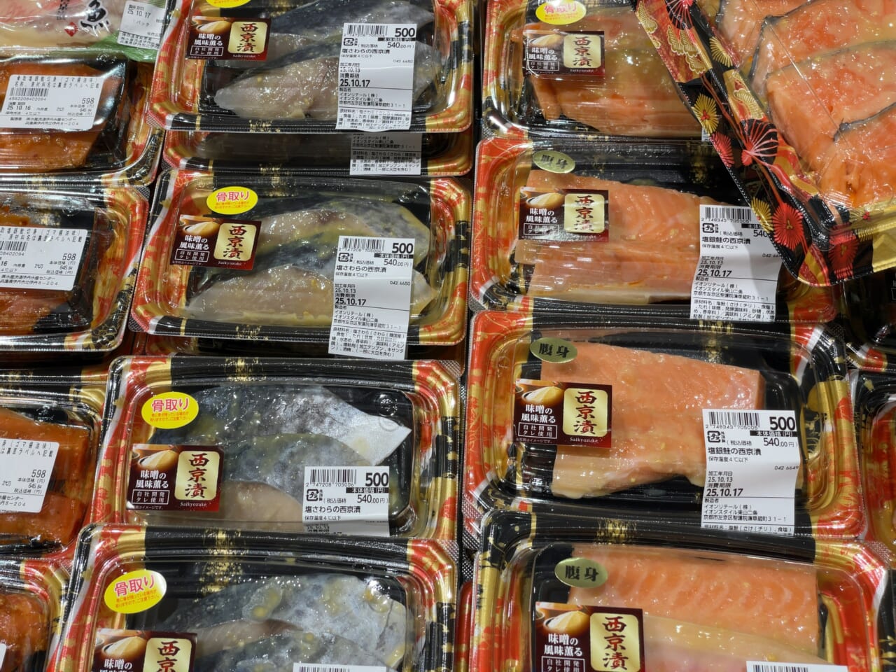 速報となる本稿では、まず鮮魚部門に注目したい。対面コーナーを導入、京都市中央卸売市場からの直送に加え、京都舞鶴漁港で水揚げされた鮮度の高い丸魚を豊富に扱う。