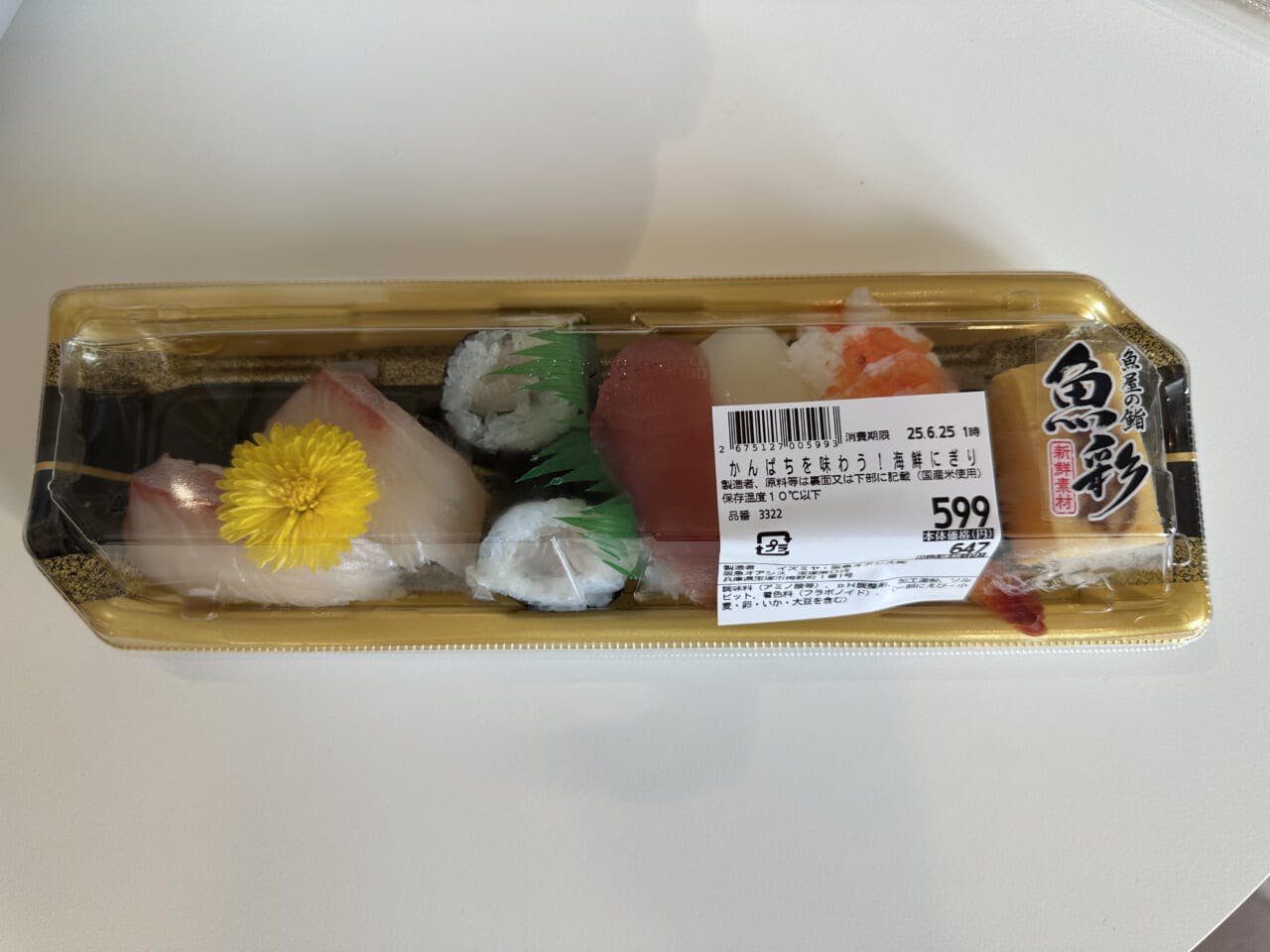 鮮魚売場は対面形式を採用し、バックヤードの作業風景を顧客に見せることで、ライブ感と鮮度感を演出している。丸魚のほか、価格を抑えた刺身商品も多く、カット済み・パック済みの即食アイテムが豊富に揃う。丸魚を加工した寿司にはパックに魚種を手書きで記し、鮮度や臨場感を訴求するツールとして購買意欲を高めている。その向かい側にある平台では鮮魚寿司や鮮魚総菜など、素材のよさを生かした商品を揃えていた。
