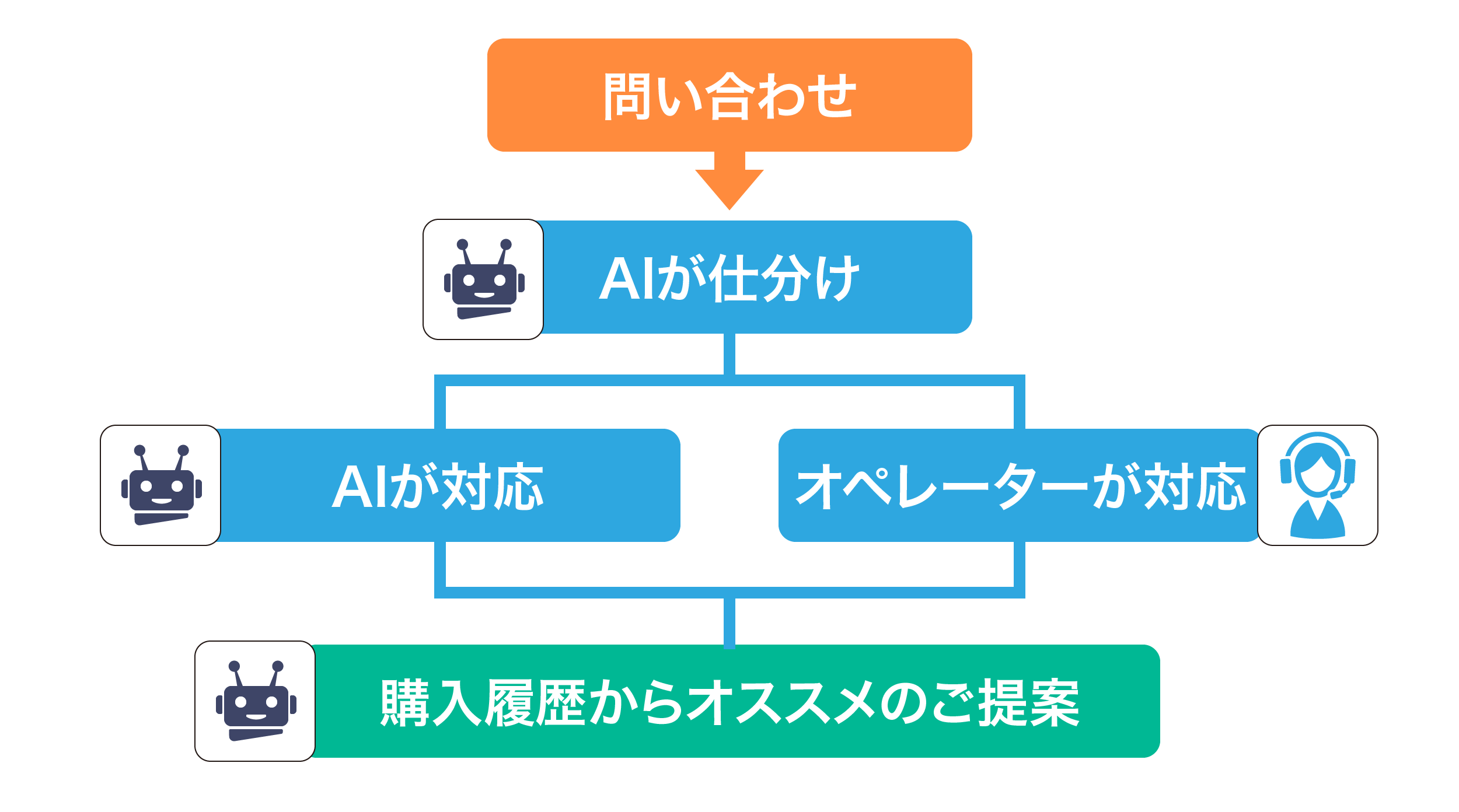 まずはAIが問い合わせ内容を自動で分類し、必要に応じてコールセンターのオペレーターが対応するか、AIで自動対応するかを判断する仕組みを導入する方法が効果的です。