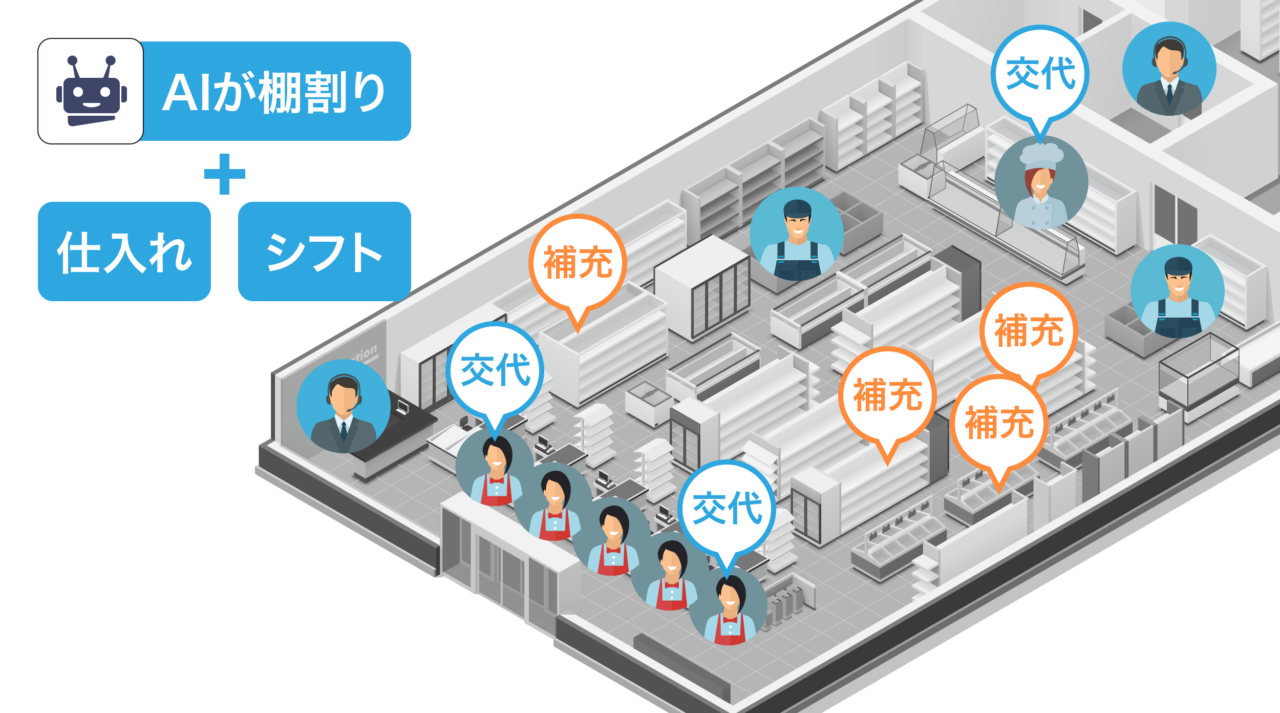 これまで属人的だった店舗レイアウトの決定が、データ学習を通じて自動化されることで、商品の補充や陳列、アルバイトの配置といった業務も最適化され、どのタイミングで作業を行うかまで自動的に組み立てられるようになります。